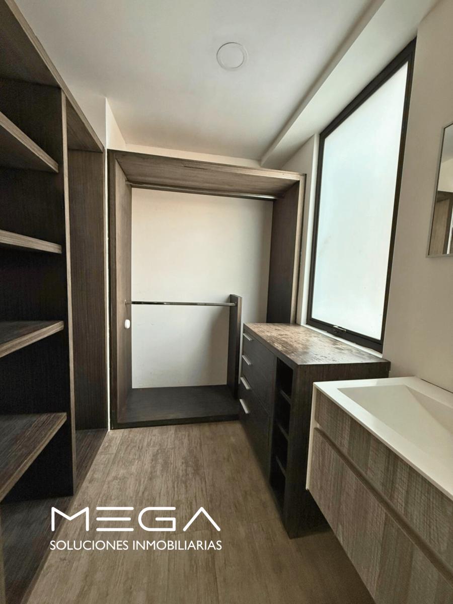 Además, ofrece dos baños completos, cuarto de lavado, dos estacionamientos techados y vigilancia 24/7.